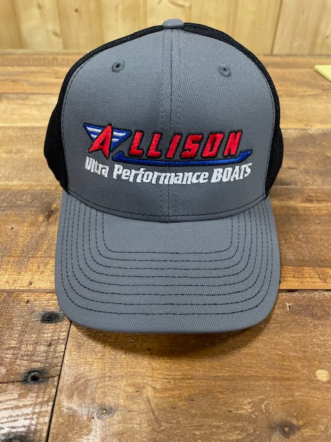 Charcoal hat w/logo. Has black soft mesh back for breathable wear.